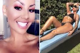 | Amber Rose flashes the flesh in eye-popping black Versace bikini and heels as she soaks up the sun She's a saucy snap connoisseur. And Amber Rose proved on trend as she shared a risque photograph and video clip that left little to the imagination on Wednesday. The 34-year-old beauty showcased her enviable figure in a skimpy black Versace bikini as she soaked up the sun in a lounger.